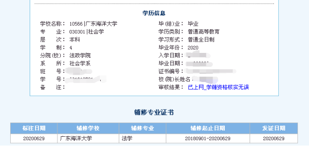 1.辅修专业证书不能在中国高等教育学生信息网(学信网)注册,但可在该网站标注,如图所示: